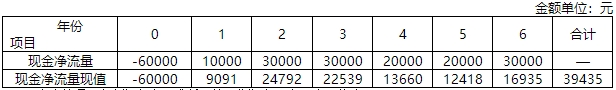 A方案調(diào)整后的凈現(xiàn)值=39435×[1+(P/F,10%,6)+(P/F,10%,12)+(P/F,10%,18)]=81354(元)