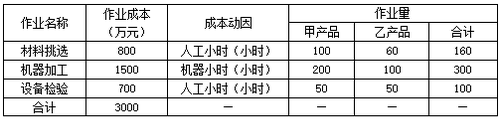 2019年8月,甲、乙兩種產(chǎn)品的產(chǎn)量分別為1000臺和2000臺,單位直接成本分別為1萬元和0.6萬元。此外,甲、乙兩種產(chǎn)品制造費(fèi)用的作業(yè)成本資料如下表所示: