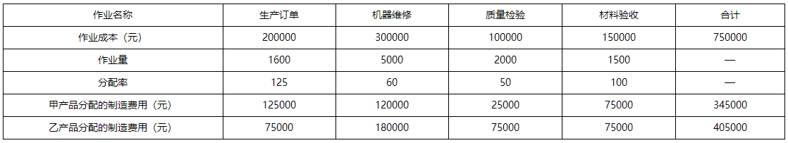 該企業(yè)制造費(fèi)用總額為750000元,按以下作業(yè)動(dòng)因進(jìn)行分配。有關(guān)資料如下: