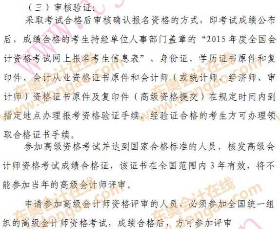 根據(jù)天津會(huì)計(jì)網(wǎng)發(fā)布《關(guān)于2015年度全國會(huì)計(jì)專業(yè)技術(shù)中、高級(jí)資格考試報(bào)名工作安排及有關(guān)問題的通知》獲悉,天津市2015年高級(jí)會(huì)計(jì)師考試資格審核實(shí)行后審方式,具體詳情如下: