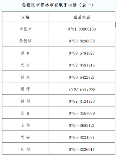 (三)報考期間,報考人員若有疑問請撥打相應(yīng)設(shè)區(qū)市服務(wù)電話(詳見表一)咨詢。