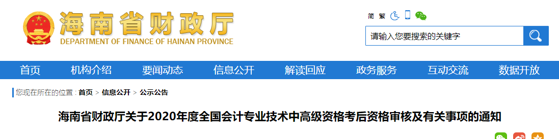 ????按照《海南省財政廳關于2020年度全國會計專業(yè)技術中高級資格考試海南考區(qū)考務日程安排及有關事項的通知》(瓊財會〔2020〕85號)精神,現將2020年度全國會計專業(yè)技術中高級資格考試海南考區(qū)考后資格審核及有關事項通知如下,請遵照執(zhí)行。
