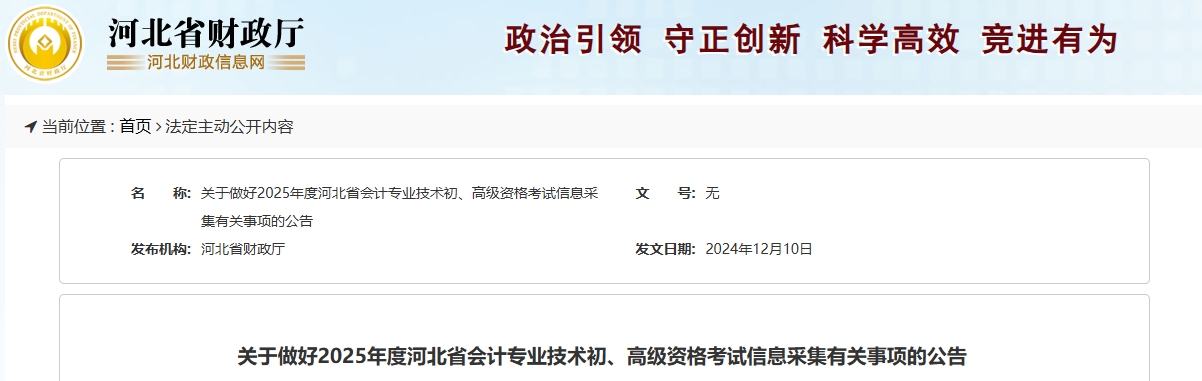 關(guān)于做好2025年度河北省會(huì)計(jì)專(zhuān)業(yè)技術(shù)初、高級(jí)資格考試信息采集有關(guān)事項(xiàng)的公告