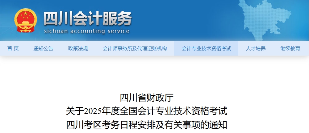 四川省財政廳關(guān)于2025年度全國會計專業(yè)技術(shù)資格考試四川考區(qū)考務(wù)日程安排及有關(guān)事項的通知
