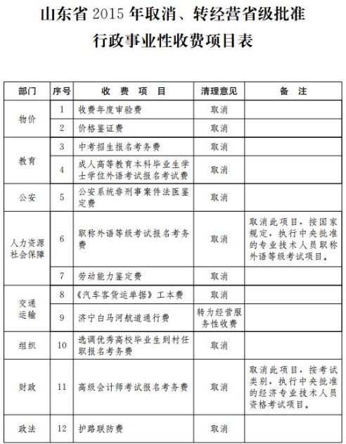 附件:1.山東省2015年取消、轉(zhuǎn)經(jīng)營(yíng)省級(jí)批準(zhǔn)行政事業(yè)性收費(fèi)項(xiàng)目表