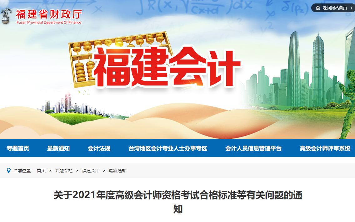 福建2021年高級(jí)會(huì)計(jì)師考試成績(jī)合格標(biāo)準(zhǔn)發(fā)布通知,現(xiàn)就2021年度高級(jí)會(huì)計(jì)師資格考試合格標(biāo)準(zhǔn)及有關(guān)問題通知如下:
