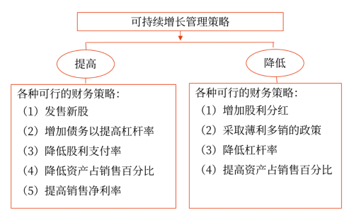 從管理角度分析,由于企業(yè)增長(zhǎng)受限于可持續(xù)增長(zhǎng)率,因此當(dāng)企業(yè)實(shí)際增長(zhǎng)率超過可持續(xù)增長(zhǎng)率時(shí),將面臨資本需要和融資壓力;而當(dāng)企業(yè)實(shí)際增長(zhǎng)率低于可持續(xù)增長(zhǎng)率時(shí),表明市場(chǎng)萎縮,企業(yè)應(yīng)調(diào)整自身經(jīng)營(yíng)戰(zhàn)略。