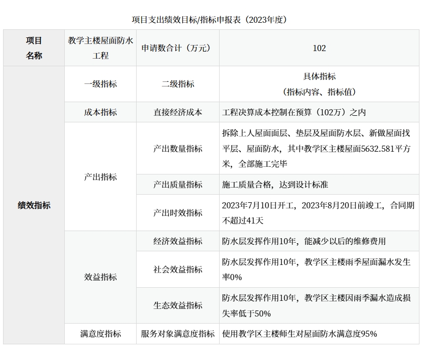 原則上每一項目均應設置產(chǎn)出指標和效益指標。工程基建類項目和大型修繕及購置項目等應設置成本指標,并逐步推廣到其他具備條件的項目。