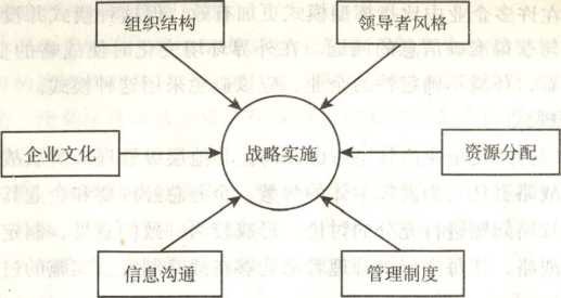 戰(zhàn)略實(shí)施過(guò)程中受許多因素影響,如組織結(jié)構(gòu)、企業(yè)文化、領(lǐng)導(dǎo)者風(fēng)格、信息溝通等,這些因素構(gòu)成了戰(zhàn)略實(shí)施支持系統(tǒng),如圖所示。