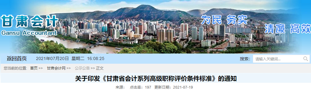 關(guān)于印發(fā)《甘肅省會(huì)計(jì)系列高級(jí)職稱(chēng)評(píng)價(jià)條件標(biāo)準(zhǔn)》的通知,甘肅高級(jí)會(huì)計(jì)師職稱(chēng)評(píng)價(jià)標(biāo)準(zhǔn)公布,自印發(fā)之日起施行。