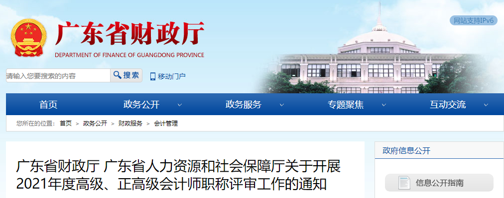 廣東省財政廳、廣東省人力資源和社會保障廳關(guān)于開展2021年度高級、正高級會計師職稱評審工作的通知