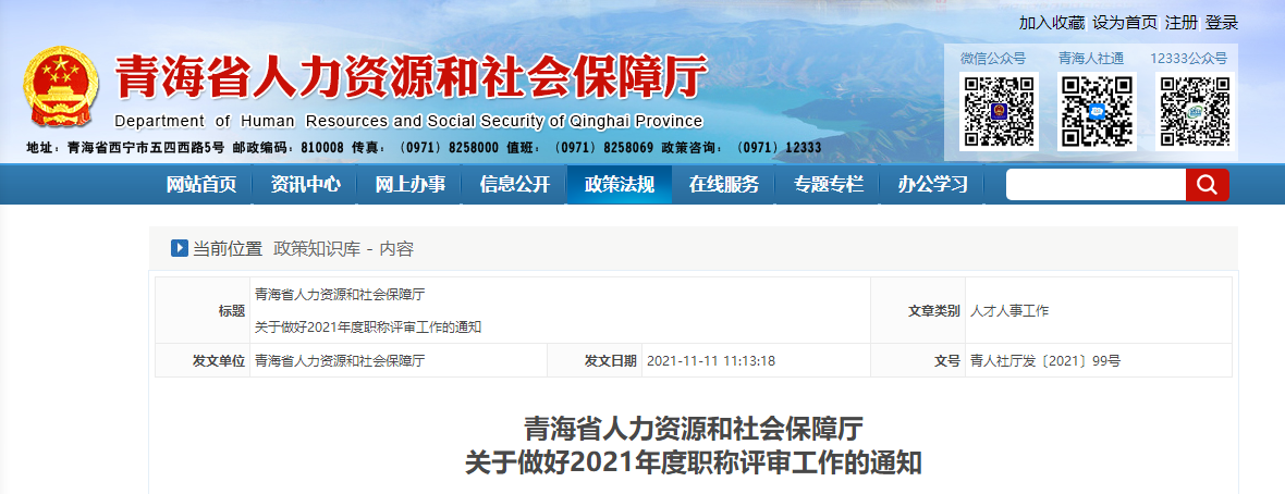 青海省人力資源和社會(huì)保障廳關(guān)于做好2021年度職稱評(píng)審工作的通知
