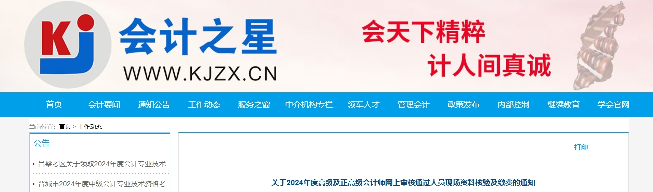 關(guān)于2024年度高級及正高級會計師網(wǎng)上審核通過人員現(xiàn)場資料核驗及繳費(fèi)的通知