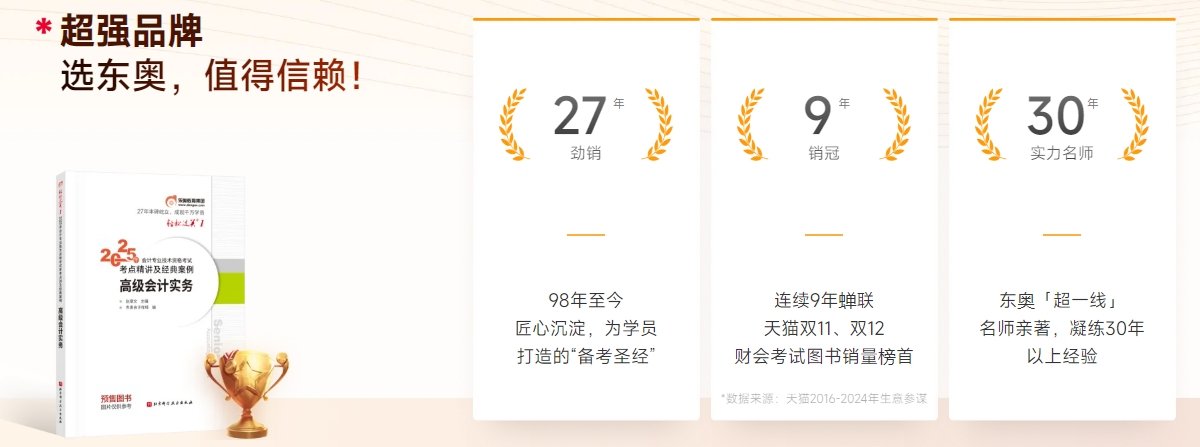 說明:因考試政策、內(nèi)容不斷變化與調(diào)整,東奧高級會計(jì)師頻道提供的以上高級會計(jì)師圖書相關(guān)信息僅供參考,如有異議,請考生以權(quán)威部門公布的內(nèi)容為準(zhǔn)!