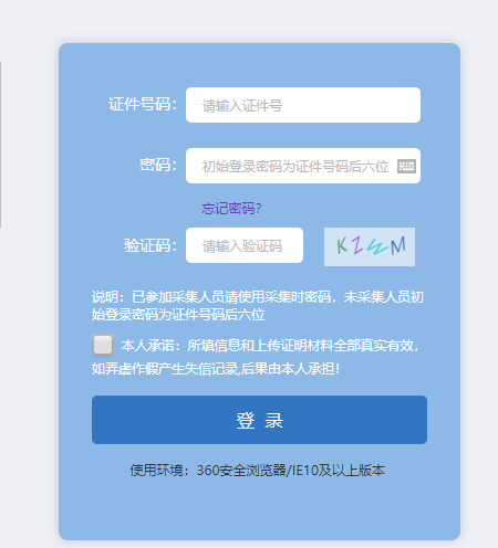 注:已采集人員請使用采集時密碼,未參加采集人員初始登錄密碼為證件號碼后六位。