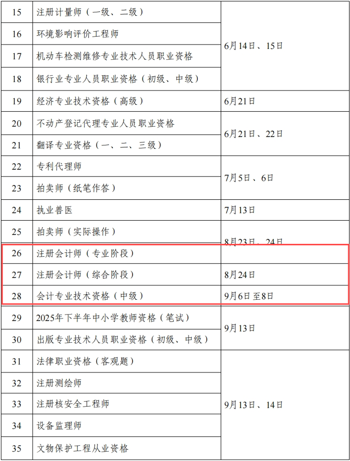 《關(guān)于2025年度專業(yè)技術(shù)人員職業(yè)資格考試工作計劃及有關(guān)事項的通知》