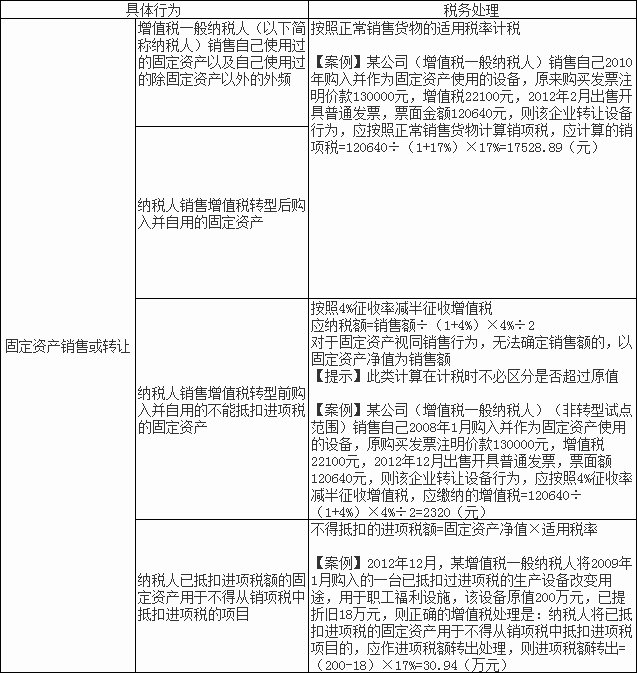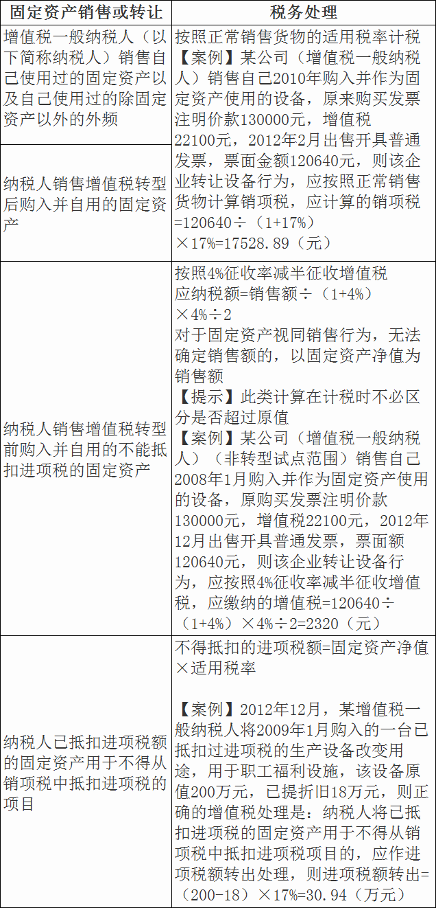 納稅人轉(zhuǎn)讓允許抵扣進(jìn)項(xiàng)稅的固定資產(chǎn)(有形動產(chǎn)類固定資產(chǎn)),不論是否抵過進(jìn)項(xiàng),轉(zhuǎn)讓時(shí)按規(guī)定稅率計(jì)算銷項(xiàng)稅;納稅人轉(zhuǎn)讓不允許抵扣進(jìn)項(xiàng)稅的固定資產(chǎn)(有形動產(chǎn)類固定資產(chǎn)),轉(zhuǎn)讓時(shí)按照4%征收率計(jì)算增值稅再減半。