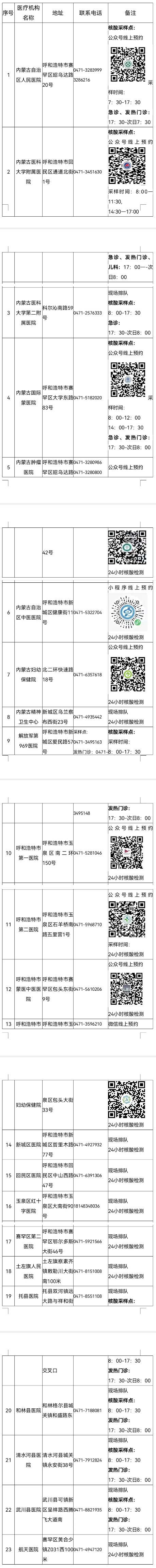 附:呼和浩特市開展新冠病毒核酸檢測(cè)醫(yī)療機(jī)構(gòu)