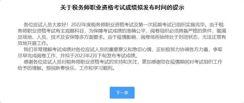 關(guān)于稅務(wù)師職業(yè)資格考試成績擬發(fā)布時(shí)間的提示