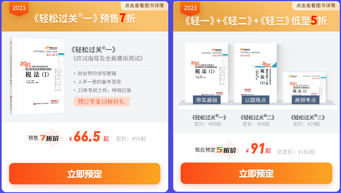 另外:2021稅務(wù)師《輕一》預(yù)售7折,《輕一》+《輕二》+《輕三》組合購買低至5折!