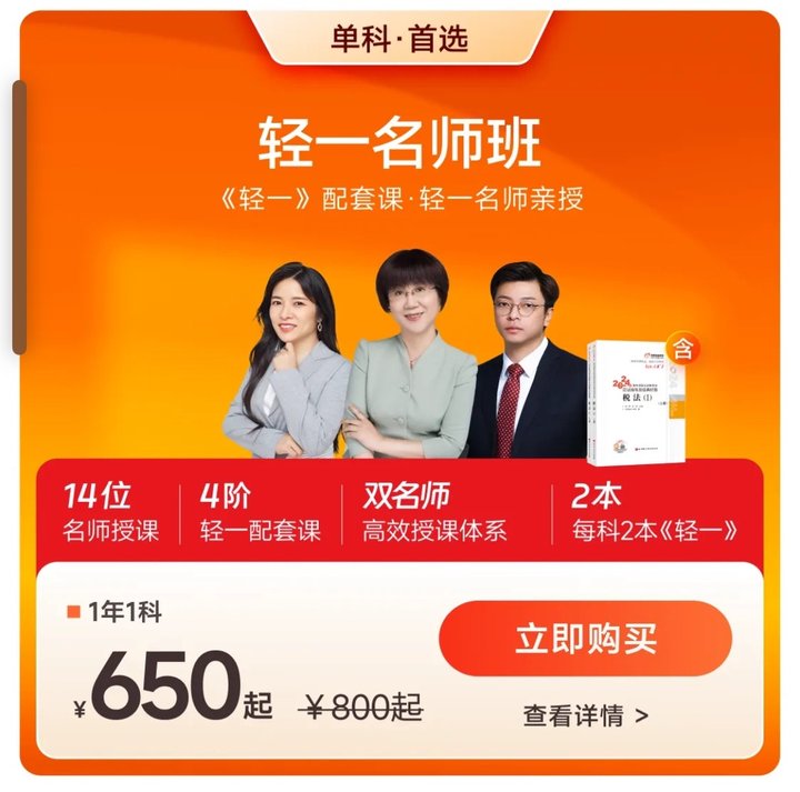 2024年稅務(wù)師三大課程體系中,人氣名師班的課程贈送圖書為《輕松過關(guān)二》;輕一名師班的課程贈送圖書為《輕松過關(guān)一》,暢聽無憂班次則是享有《輕二》+《輕一》全部圖書。以下為詳細(xì)的圖書介紹。