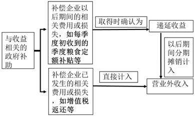 等科目,貸記“遞延收益”科目;在以后期間確認(rèn)相關(guān)費(fèi)用時(shí),按應(yīng)予以補(bǔ)償?shù)慕痤~,借記“遞延收益”科目,貸記“營(yíng)業(yè)外收入”科目。
