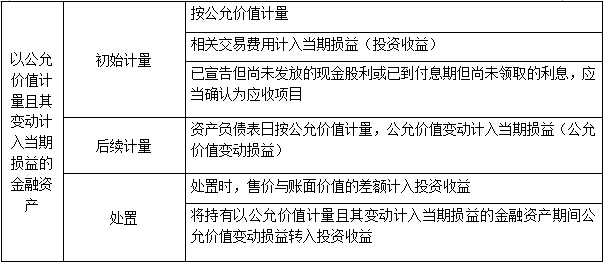 以公允價(jià)值計(jì)量且其變動(dòng)計(jì)入當(dāng)期損益的金融資產(chǎn)的會(huì)計(jì)處理如下表所示: