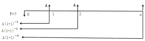 根據(jù)復(fù)利現(xiàn)值的計算公式,將每期期末年金A折現(xiàn)到第0期期初,然后再相加,求出P: