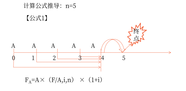 公式1:FA=A×(F/A,i,n)×(1+i)