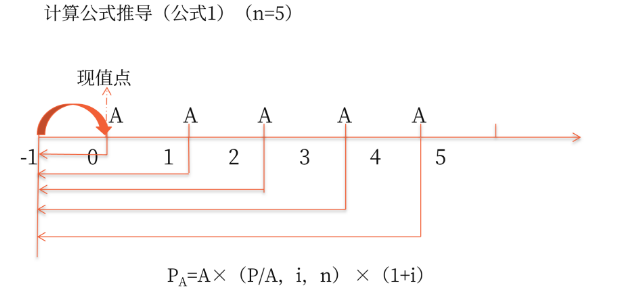 公式1:PA=A×(P/A,i,n)×(1+i)