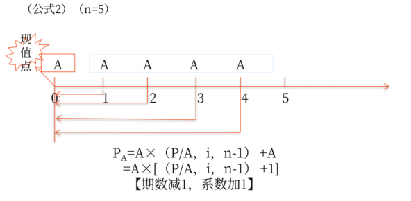公式2:PA=A×[(P/A,i,n-1)+1](期數(shù)減1,系數(shù)加1)