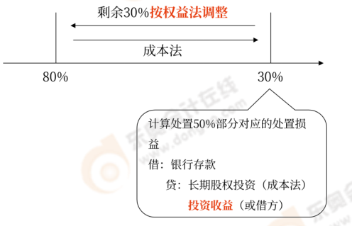 成本法→權(quán)益法 (70%→30%) | 只賣40% | 剩余30%按權(quán)益法追溯調(diào)整 | 賣 | 買 | |