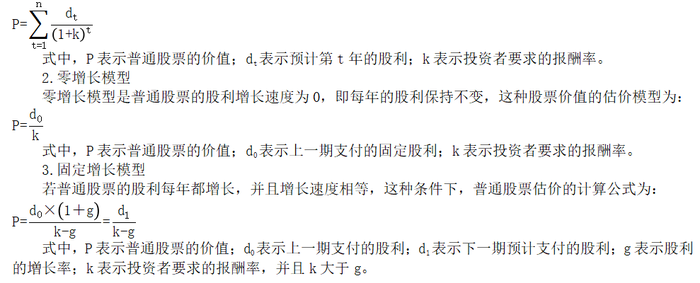 股票的估價模型有以下四種: