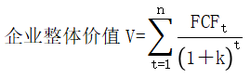 式中,V表示目標(biāo)公司價(jià)值;FCF表示目標(biāo)公司自由現(xiàn)金流量;k表示折現(xiàn)率;t表示期限;n表示折現(xiàn)期。