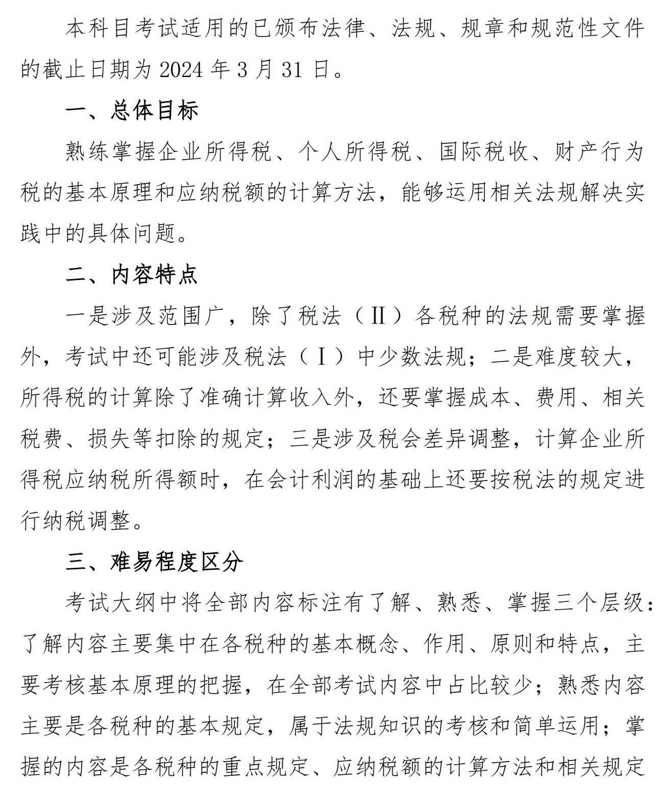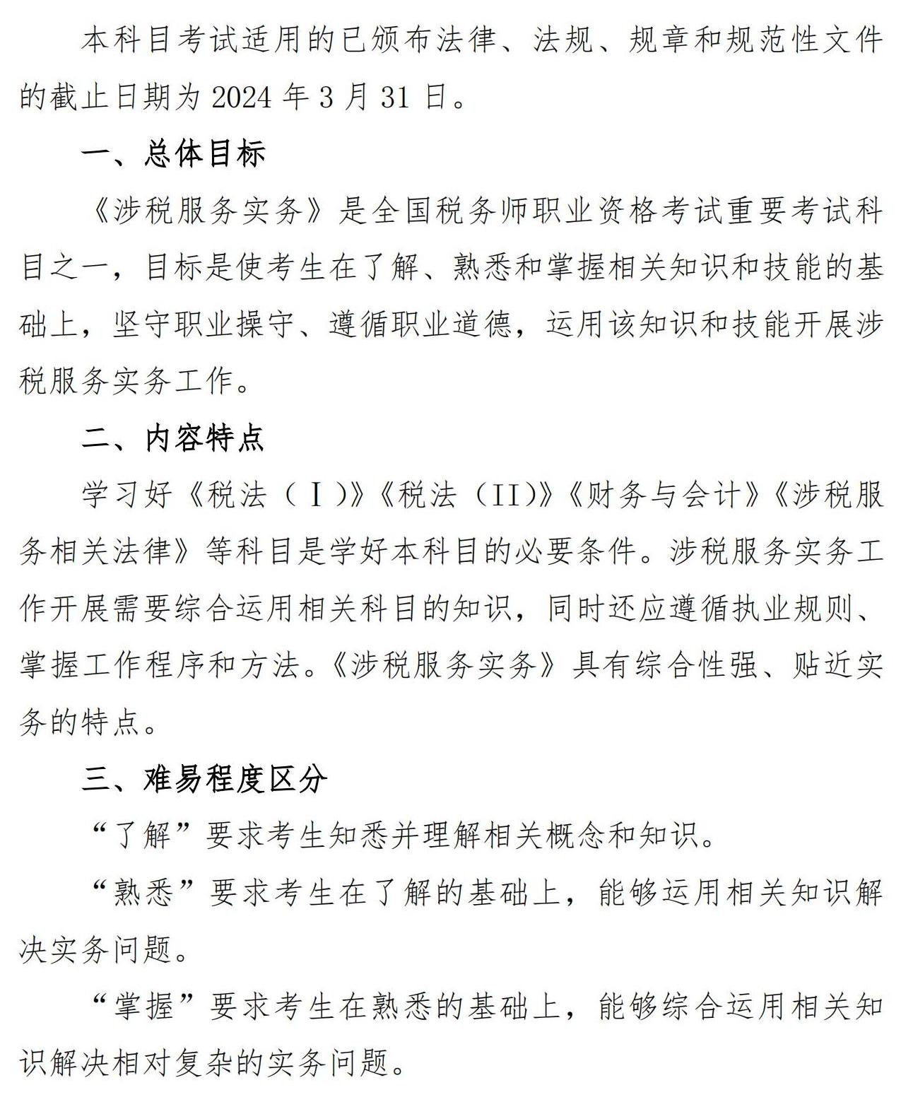 以上就是2024年稅務(wù)師考試大綱的內(nèi)容,希望同學(xué)們可以好好利用考試大綱,完成備考,順利通過2024年11月2-3日的稅務(wù)師考試!