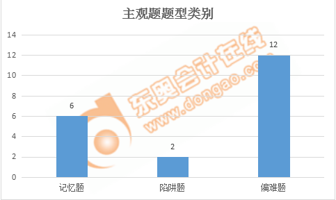 在分析了章節(jié)、分值、難度之后,我們最后來了解一下涉稅服務相關法律主觀題的題型類別。該科目主觀題一共分為三種:記憶題、陷阱題和偏難題。如下圖所示,記憶類題目共6道,陷阱類題目共2道,偏難類題目為12道。