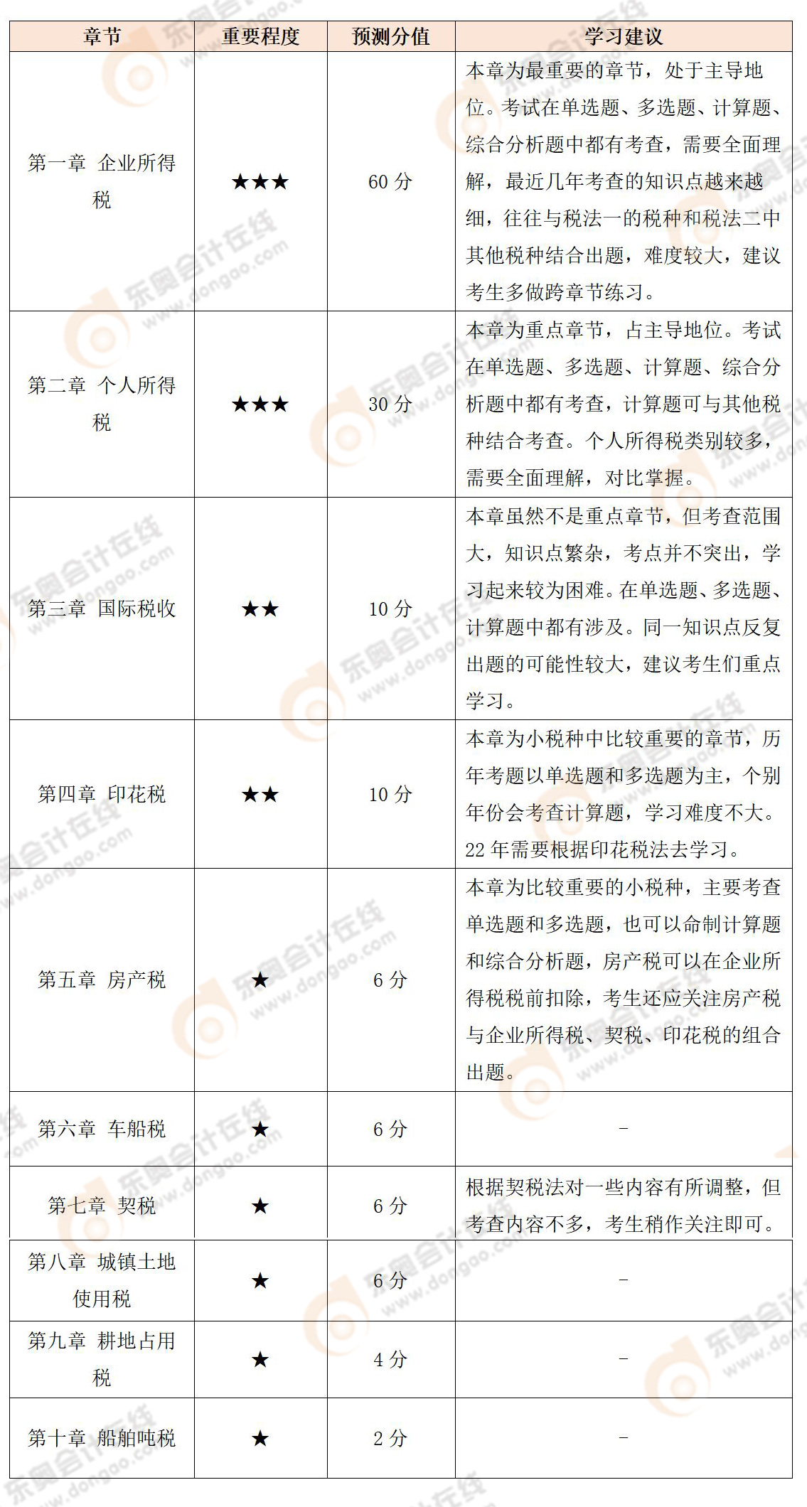 《稅法二》基礎(chǔ)階段章節(jié)重要程度