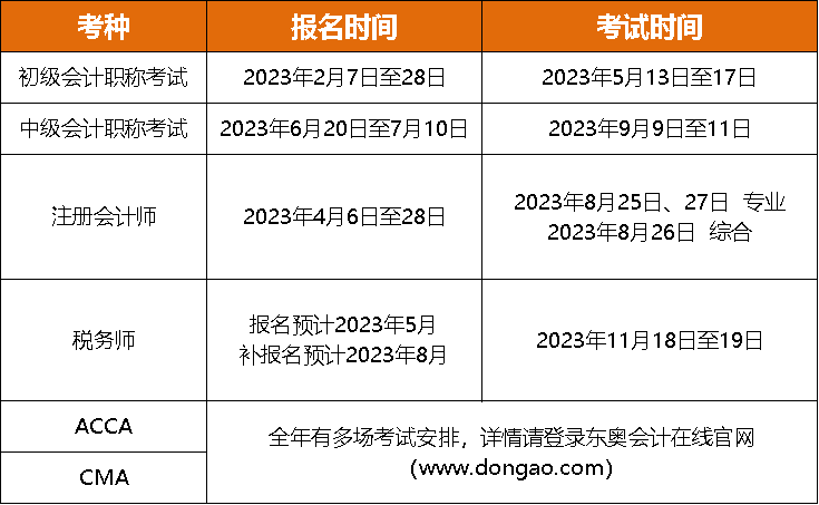 2023年財會考季已經(jīng)到來,初級會計職稱、中級會計職稱、注冊會計師、稅務(wù)師考試、ACCA、CMA等考試將陸續(xù)開始報名、考試。