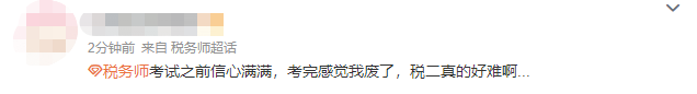 目前2022年稅務(wù)師二次延考稅法二科目的考試已經(jīng)結(jié)束了,有很多考生在考后都在微博上“吐槽”:稅二太難了,突出一個(gè)“蒙”!那么各位考生你們認(rèn)為本次稅法二延考難度大嗎?大家發(fā)揮的好不好呢?下文為各位考生的相關(guān)反饋,大家一起在下文中了解吧!