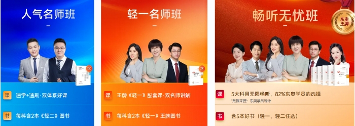 2024年東奧稅務師考試課程共分為三大課程體系,包括人氣名師班、輕一名師班、暢聽無憂班。