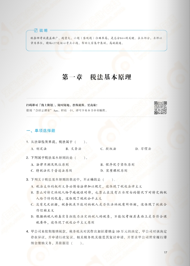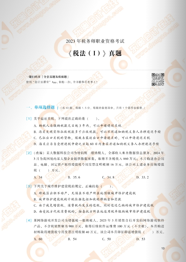 歷年稅務師考試的考題,因其高度貼近實際的考試考查思路和難度,對于準備參加稅務師考試的考生而言,具有極高的參考價值。通過仔細研究和解答這些考題,考生們可以洞察到考試的出題規(guī)律,從而更加精準地把握備考方向。