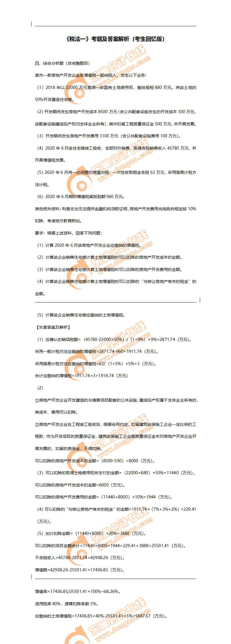 注:以上稅務(wù)師考試試題內(nèi)容由考生回憶反饋,東奧教研團隊統(tǒng)計,東奧會計在線整理發(fā)布