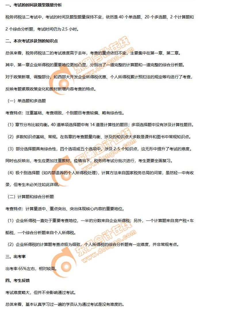 2021年稅務(wù)師延考稅法二考情分析及考點分布_考生回憶版