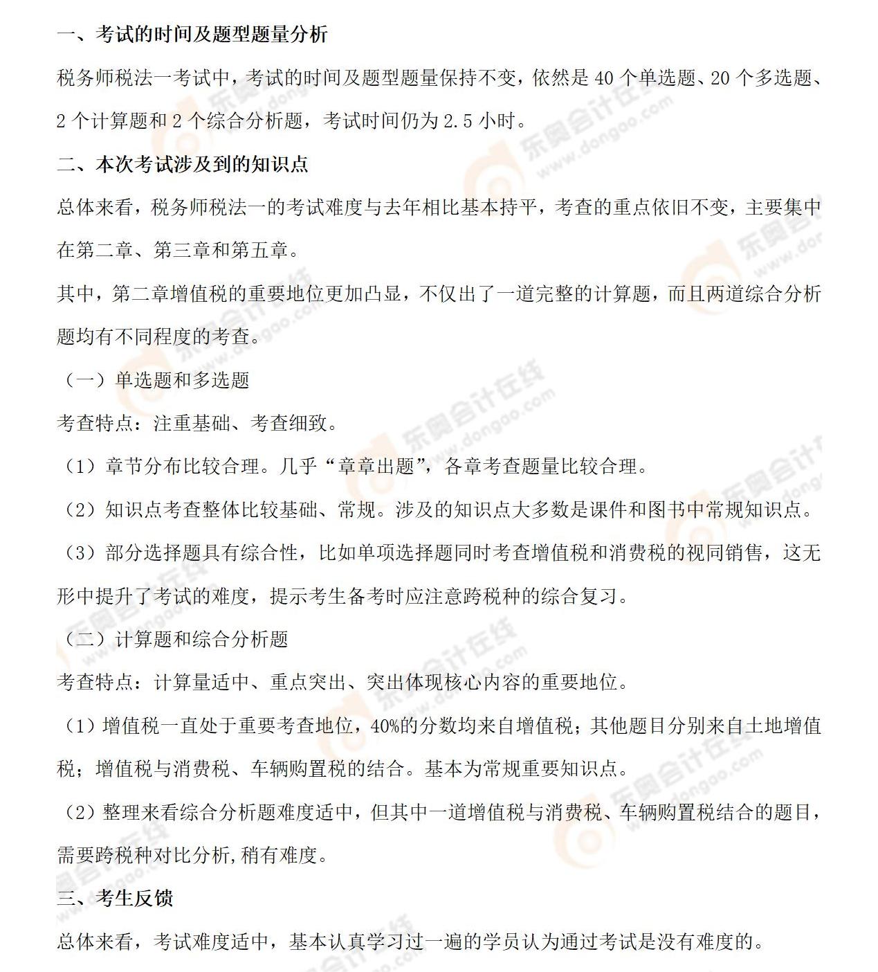 2022年稅務(wù)師二次延考稅法一考情及考點分析_考生回憶版