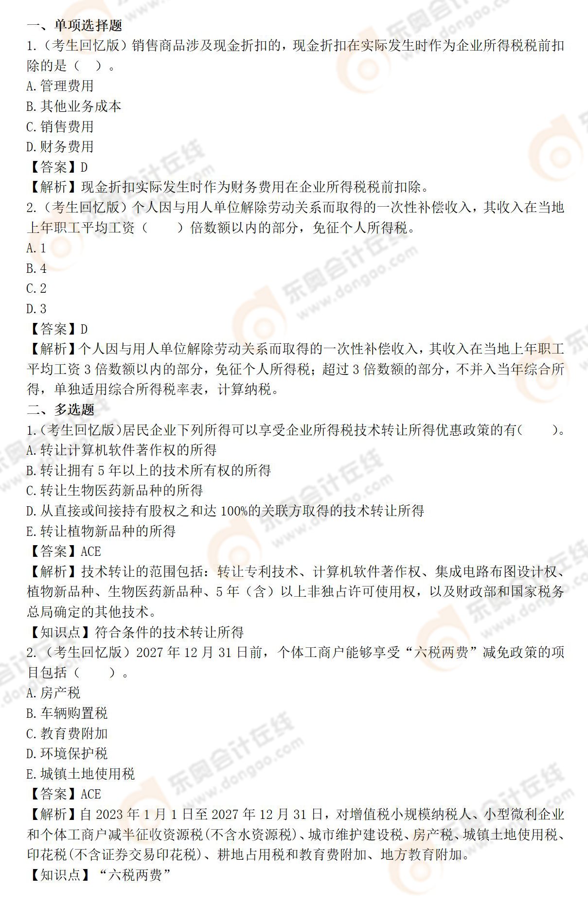 注:以上稅務(wù)師考試試題內(nèi)容由考生回憶反饋,東奧教研團(tuán)隊(duì)統(tǒng)計(jì),東奧會(huì)計(jì)在線整理發(fā)布