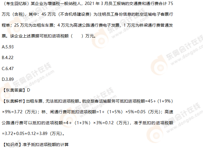 (本文內(nèi)容由東奧教研團隊提供,東奧會計在線整理發(fā)布)