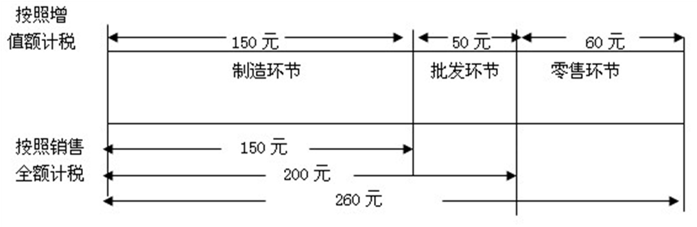 (2)按照銷售全額課稅,會(huì)產(chǎn)生對(duì)銷售額中以前環(huán)節(jié)納過稅的銷售額重復(fù)征稅。同一種產(chǎn)品,經(jīng)過的流轉(zhuǎn)環(huán)節(jié)越多,重復(fù)課稅的次數(shù)就越多、整體稅負(fù)就越重。