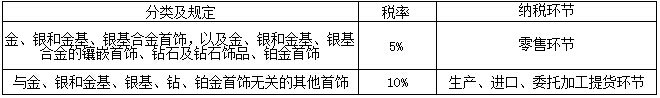 貴重首飾及珠寶玉石稅率及納稅環(huán)節(jié)的規(guī)定見下表: