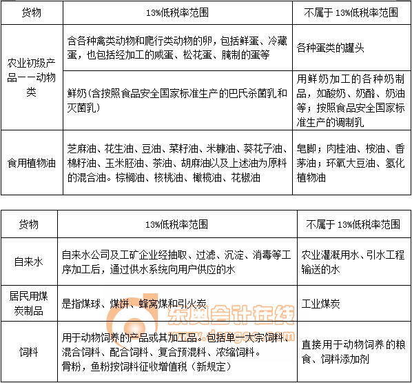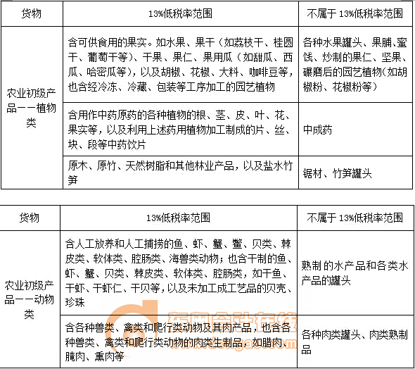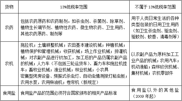 (一)適用13%低稅率貨物的具體范圍
