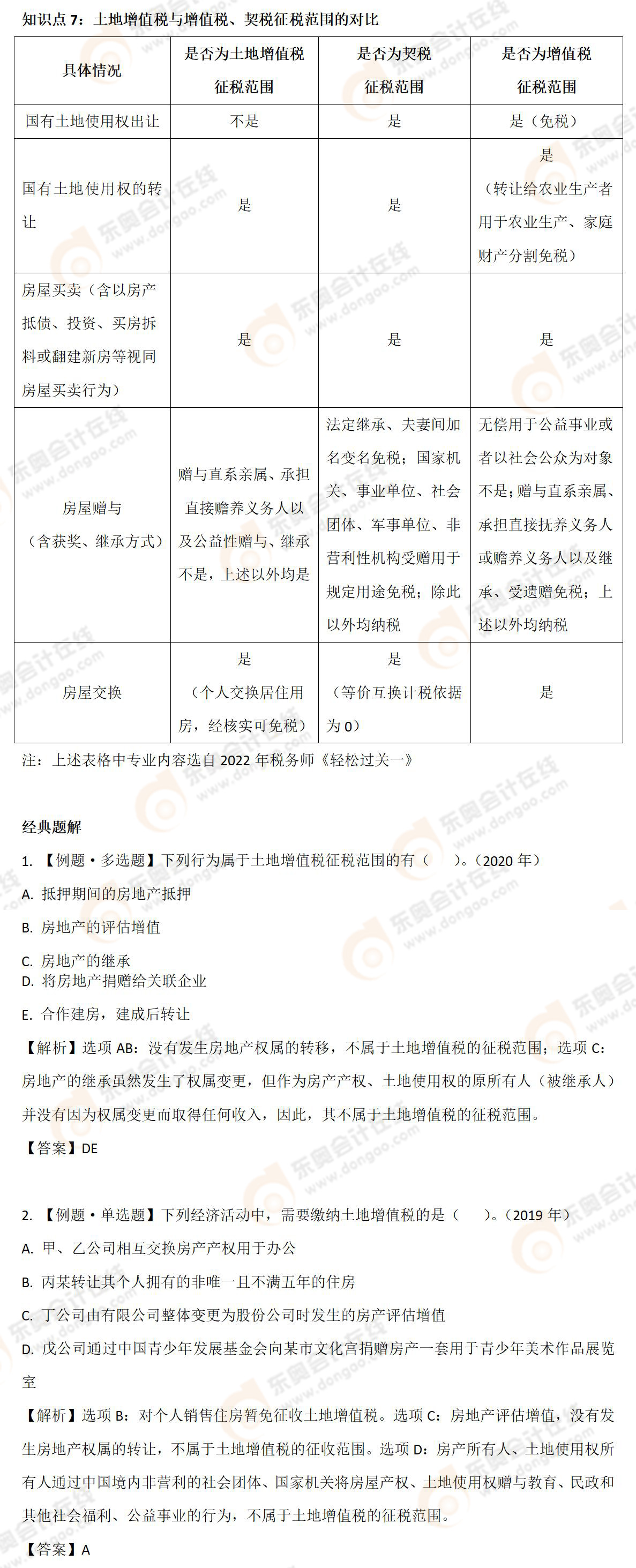 知識點:土地增值稅、增值稅、契稅的征稅范圍